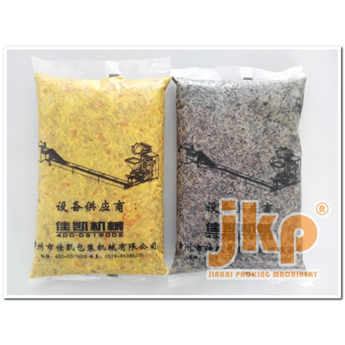 Cost saving for packaging. Continuous filling and packaging to reduce the cost of making premade bags, and to further reduce the fees for management and material inventory.